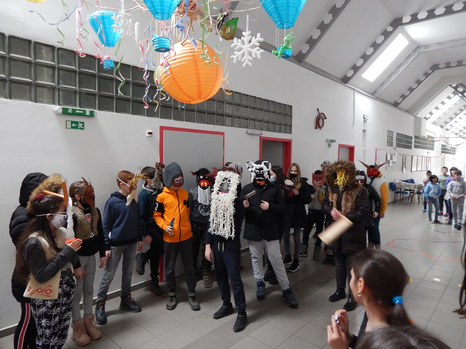 Az 5.a osztályosok német nemzetiségi népismeret órán ismerkedtek a magyarországi németek farsangi hagyományaival, szokásaival. Különös figyelmet szenteltünk a kőszegfalvi hagyományoknak. Gulner László könyvét olvasgatva kedvünk támadt egy igazi farsangi felvonulás megvalósításához. A gyerekek az órán többféle módszert megtekintve otthon készítették el farsangi állarcaikat. Farsang keddjén, azaz az utolsó farsangi napon aztán beöltözve, mindenféle zajkeltő eszközzel felszerelve tettünk egy kört az iskolában. Az alsó tagozatosok először meglepetten, félénken nézegették a hangos menetet, de aztán örömmel szedegették a közéjük dobált cukorkákat. „Der Winter ist weg. Der Fasching ist weg. Die Sorgen sind weg.” -skandálták a felvonulók. És hogy időszerűek legyünk kiegészítettük a mondókát: „Die Viren sollen verschwinden.” (Ambrusné Kluk Andrea)